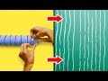 Envuelve un rodillo con una cuerda y pinta. ¡Te sorprenderás con el resultado! ¡Corta los rodillos de pintura en cualquier patrón para crear un diseño para transferir instantáneamente a las paredes!